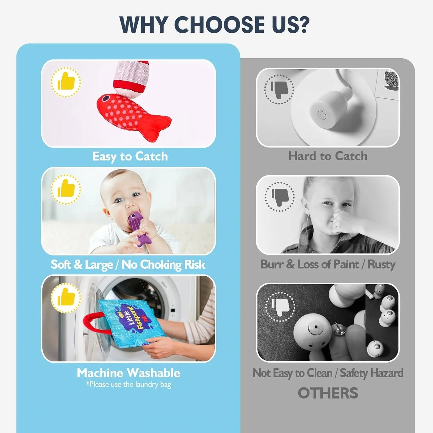Montessori-Inspired Fishing Set: With 22 Pcs, including a fishing pole, 15 pcs fish, 5 pcs stackable fish buckets, and an ocean mat that doubles as a storage bag, it encourages toddler’s natural curiosity, hands-on learning, active exploration and promote skill development. Introduce your little one to their first fishing adventure with our soft, toddler-friendly cloth fishing toys