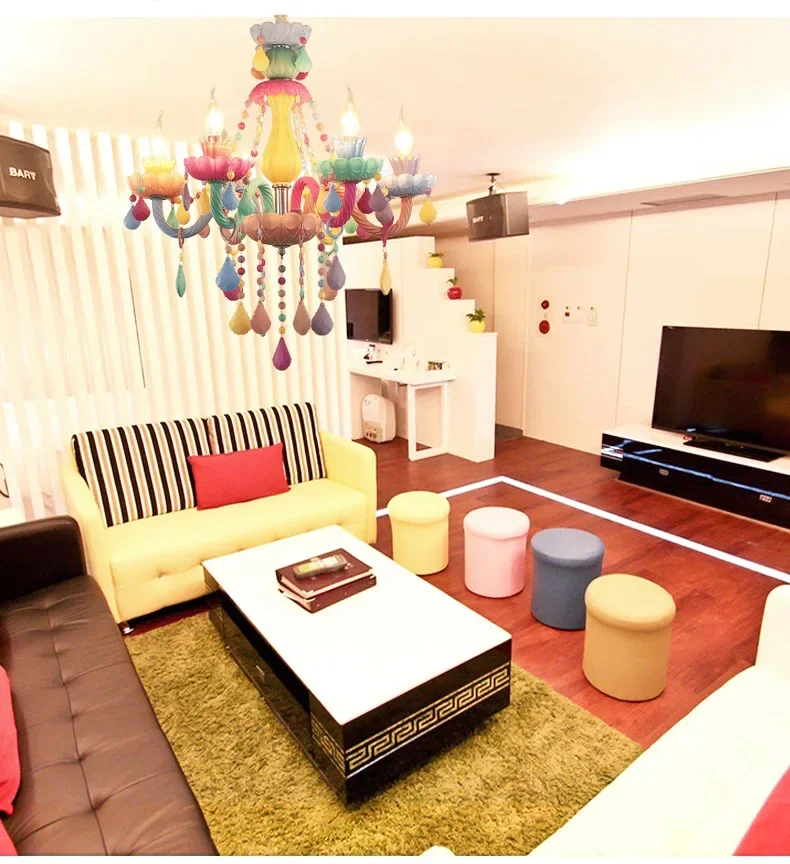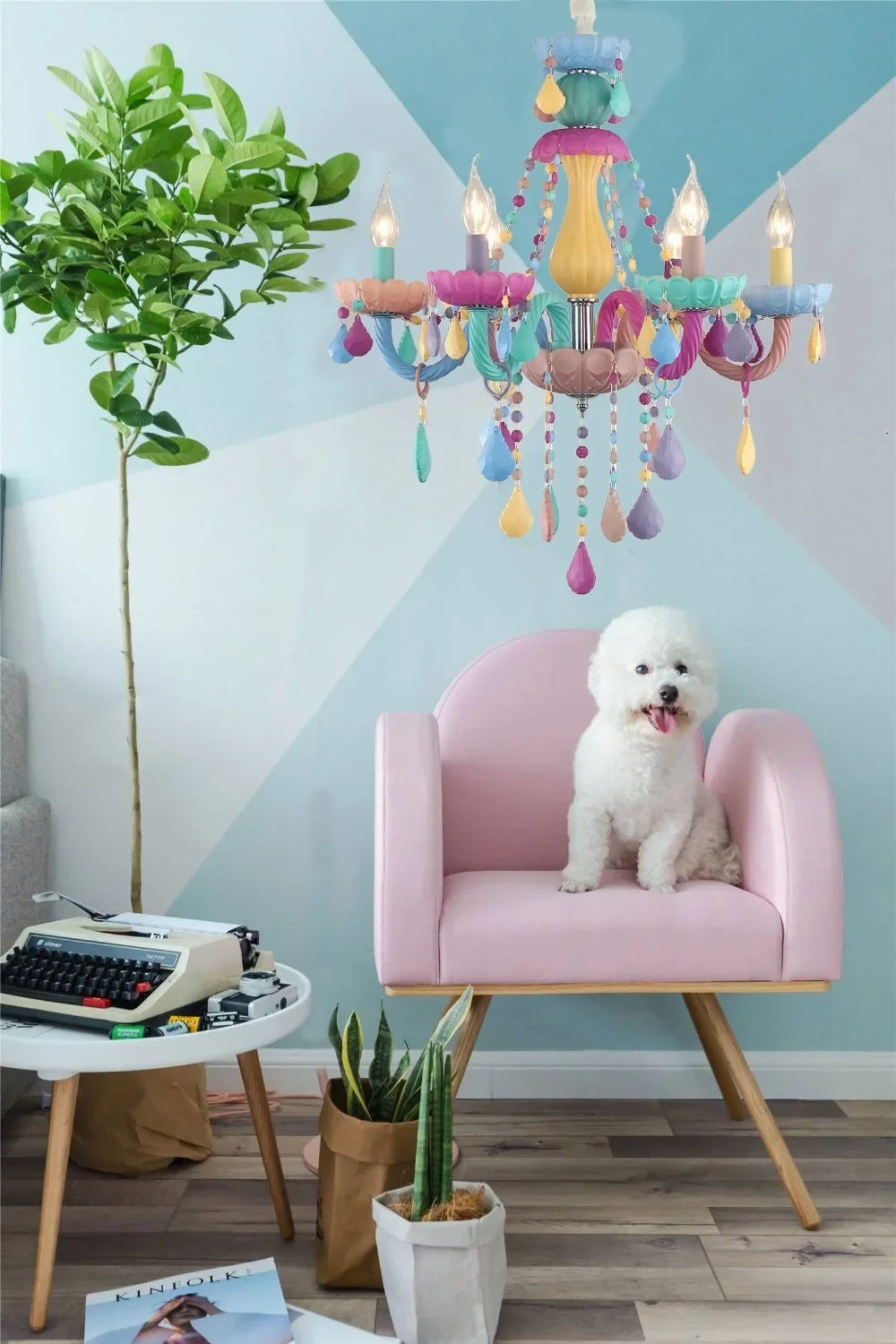 Designer Colorful Crystal Children's Hanging Chandelier Lights Lustre Romantic Bedroom Decoration Suspension Led Lighting