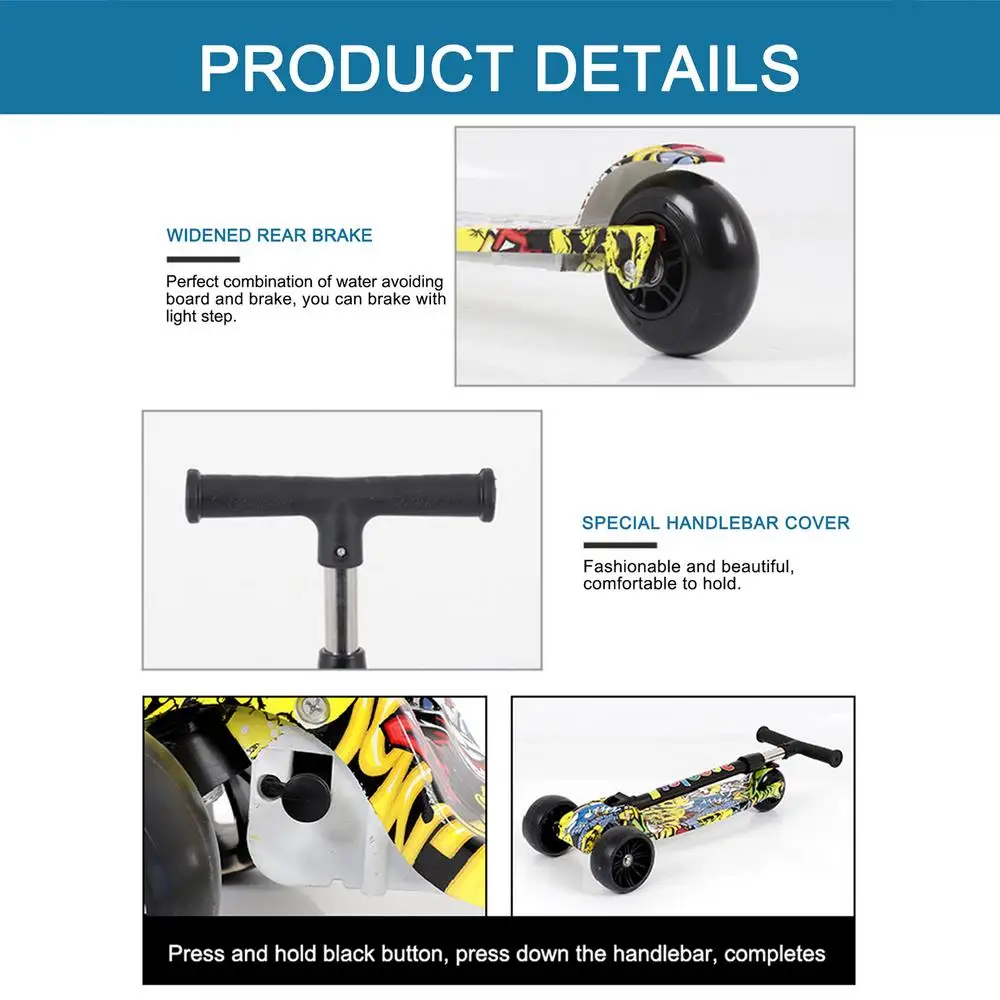Children's Scooter High Quality Lightweight Fast Folding Adjustable Height Widened Pedals Scooter with 3 Light Up Wheel